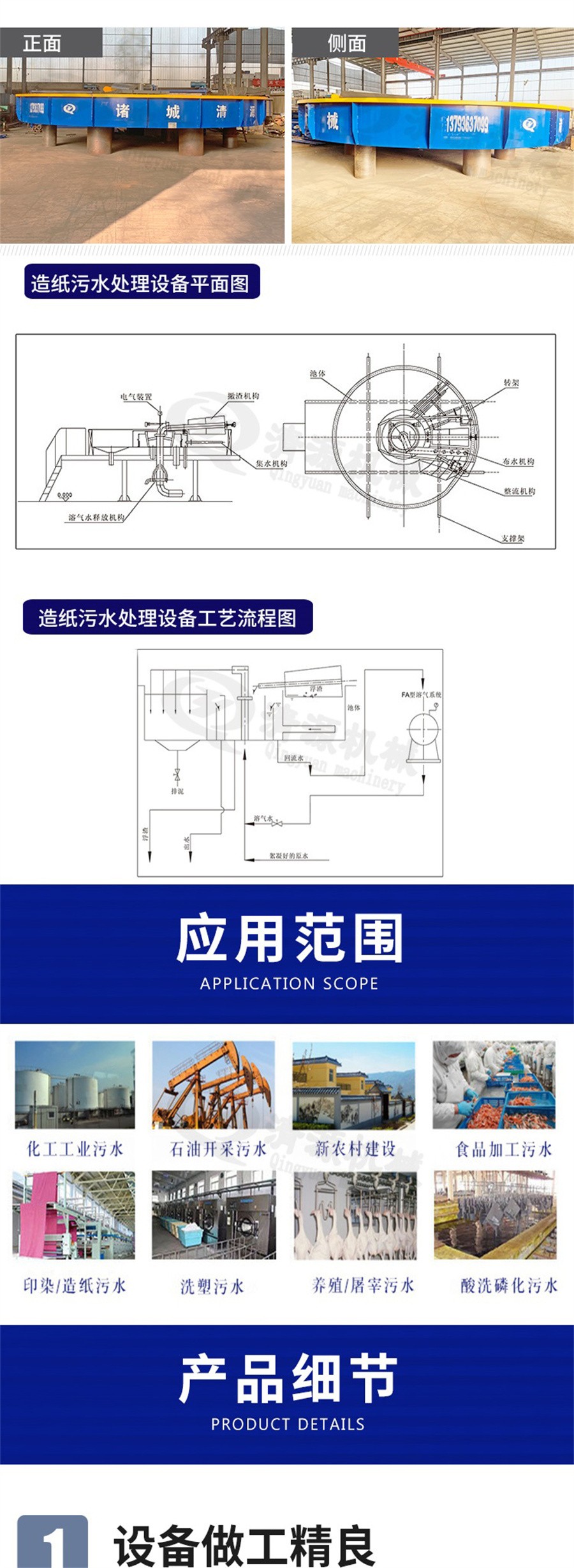 此外,我公司不僅生產造紙污水處理設備,還生產農村污水處理設備、氣浮機、污泥壓濾機、造紙設備等其他環保設備。