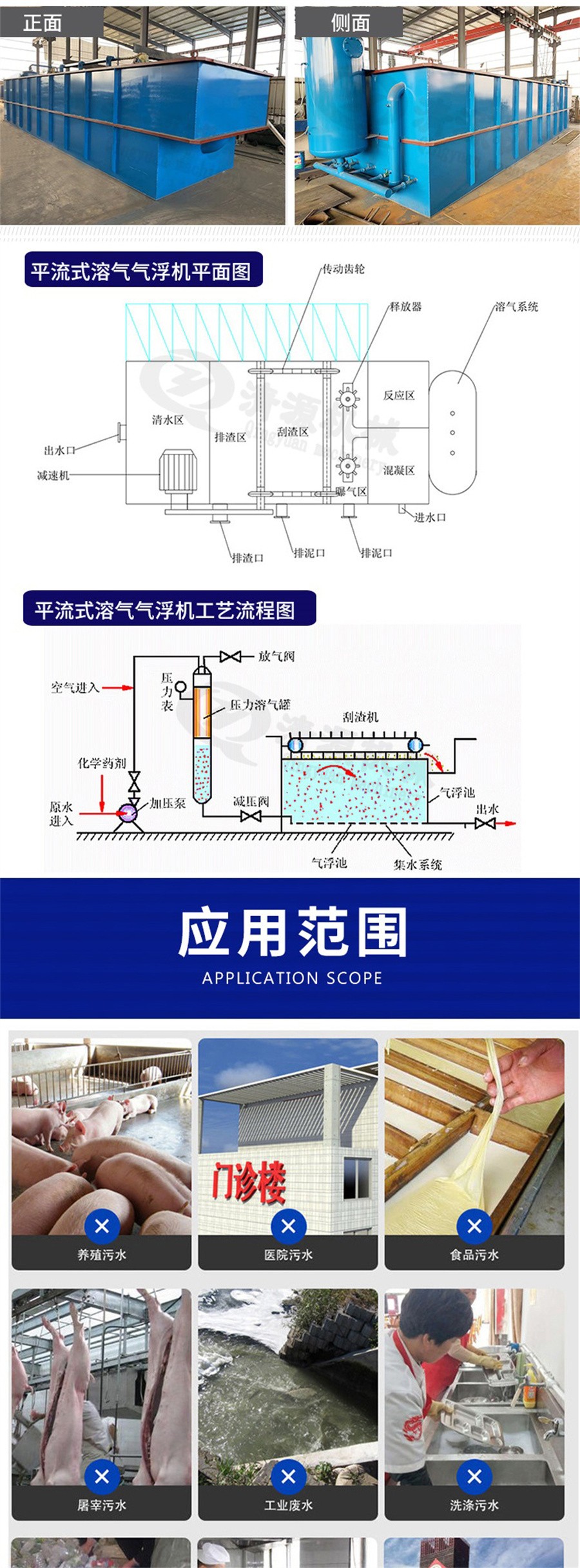 此外,我公司不僅生產屠宰污水處理設備,還生產屠宰一體化污水處理設備、氣浮機、洗砂污水處理設備、固液分離設備、養殖污水處