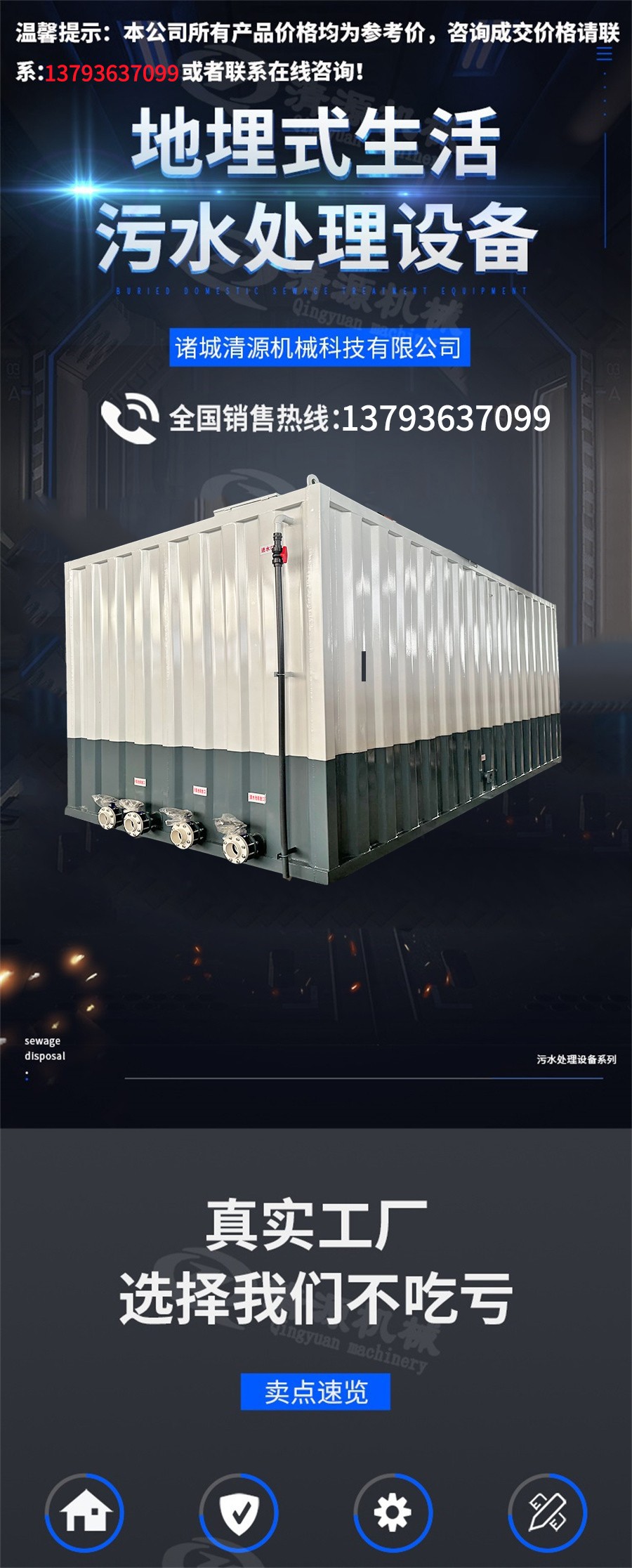 此裝置一般埋設于地表之下,運用二次生物接觸氧化處理工藝,它處理的效果超越全混合生物氧化池,對水質的適應性強度高,保證了水處理的穩定性。該設備在池中采用了新型彈性立體填料,對污水中的有機物質具有去除的功能。該設備通過氧化處理之后,產生的污泥量較少,僅需90天排放一次即可。為了避免放生菌類滋生、傳播的現象發生,必須對水質進行深度消的毒處理。