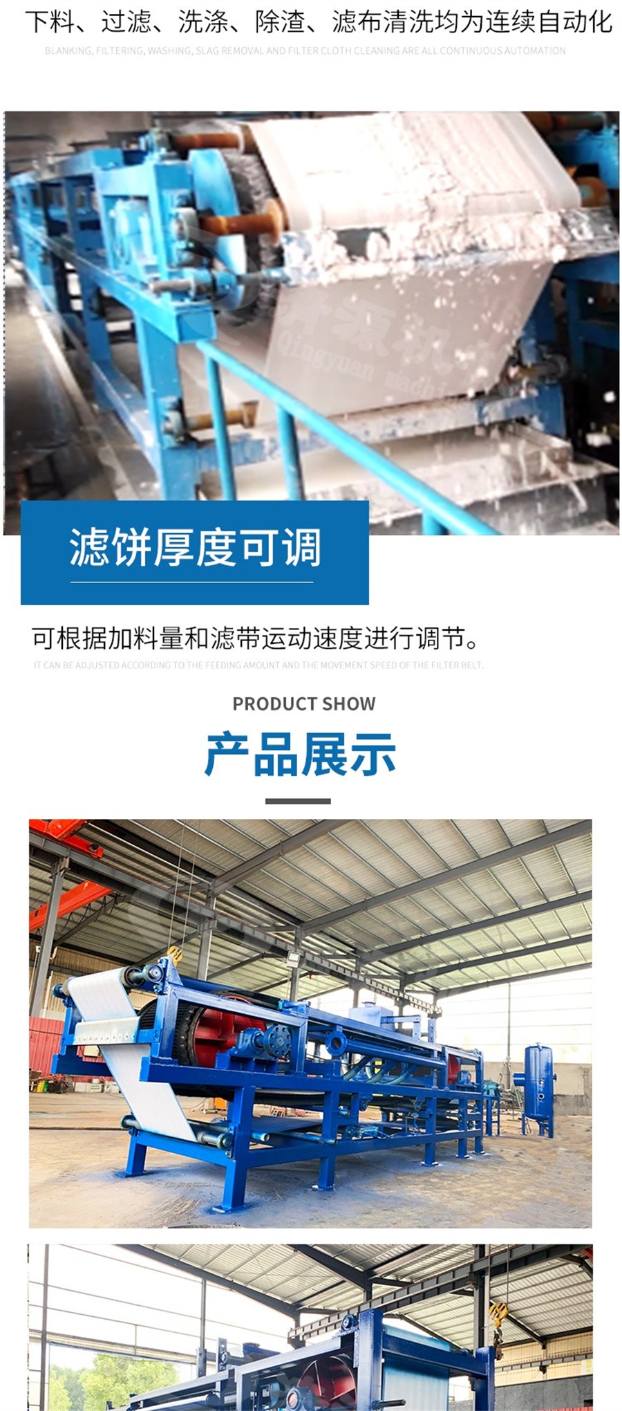 3: 濾工藝方便; 濾餅厚度. 洗水量. 逆流洗滌級數. 真 空度. 濾布速度任意調整,以達到更佳過濾效果。 4 : 洗滌效果好; 可實現多級平流或逆流洗滌,洗滌均勻徹底,母液和洗滌液根據 工藝需要可分開收集和再利用。