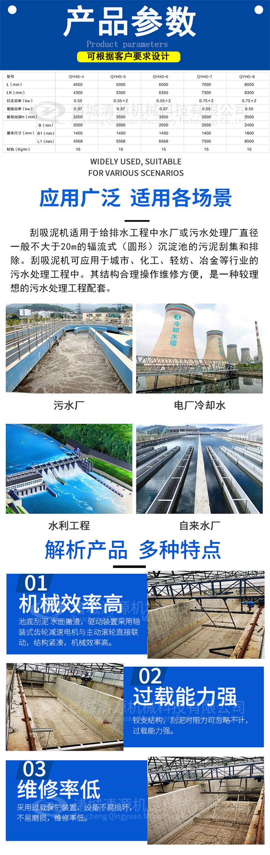 6.虹吸泥機管上可設獨特的排泥量調節裝置,根據排泥程度自動調整泥量,以節約處理費用。
