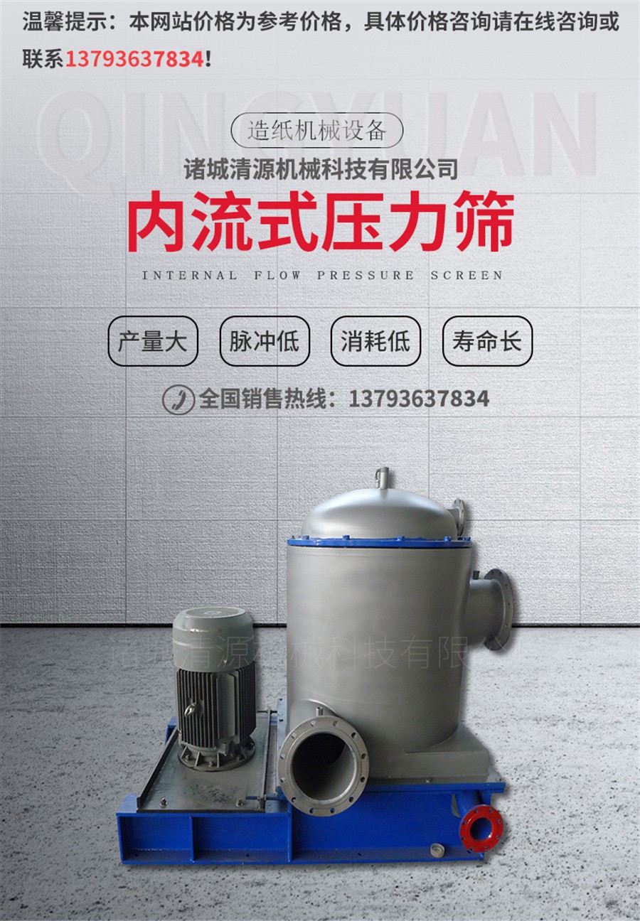 ZNL內(nèi)流式壓力篩主要用于制漿造紙行業(yè)紙機(jī)前的篩選,也可作為制漿系統(tǒng)的精篩。具有產(chǎn)量大、脈沖低、不易堵塞、動(dòng)力消耗低、使用壽命長(zhǎng)等優(yōu)點(diǎn)。